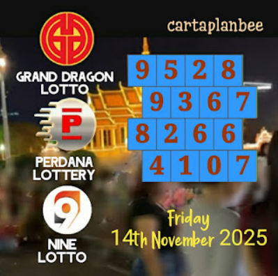 CARTAPLANBEE – 4D Forecast Chart for Friday, 14th November 2025: Grand Dragon Lotto, Perdana Lottery (7:30 PM), and Nine Lotto.